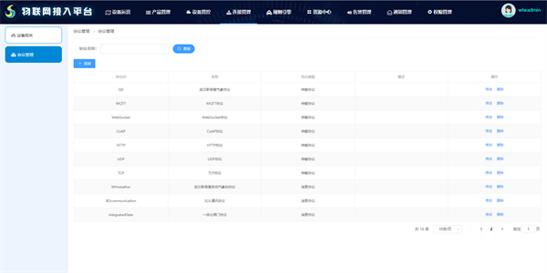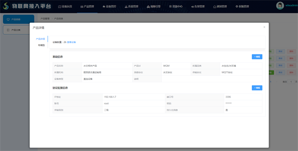 2)產(chǎn)品管理:配置直連設(shè)備、網(wǎng)關(guān)設(shè)備和網(wǎng)關(guān)子設(shè)備的消息協(xié)議和傳輸協(xié)議。